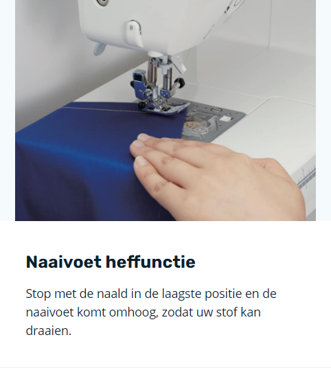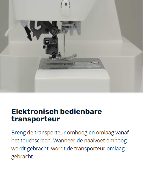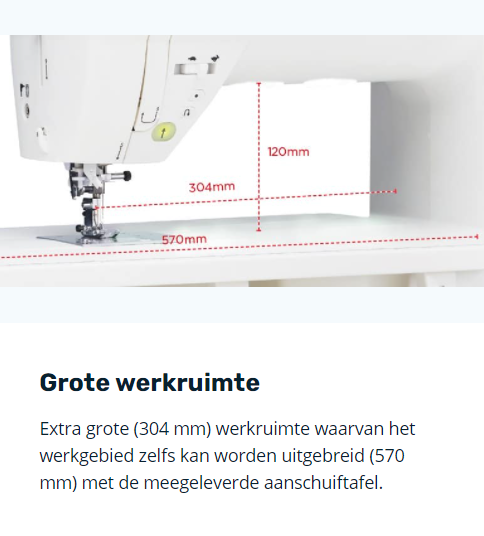 Naaimachine met verbluffende naairesultaten. Met kleuren Touchscreen, extra grote werkruimte, ingebouwde LED verlichting en BOX Feed transportsysteem.