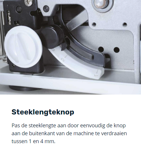 | Naaivoethoogte | 5 / 7,5 mm |